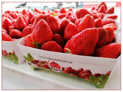 Ihr bekommt unsere Erdbeeren an vielen Verkaufsständen in Schleswig-Holstein in der 500-g- oder 1-kg-Schale sowie im 2-kg-Korb.